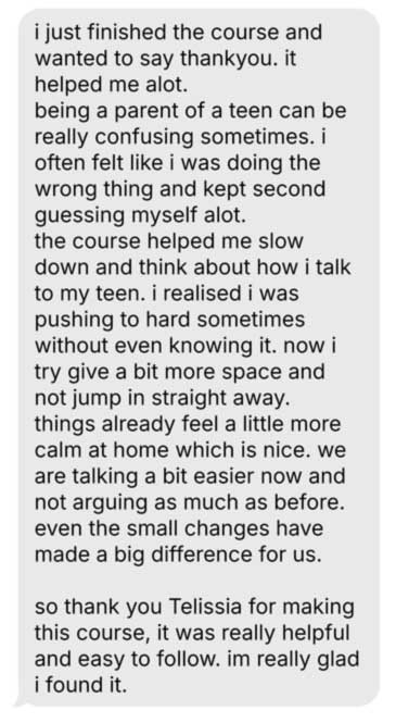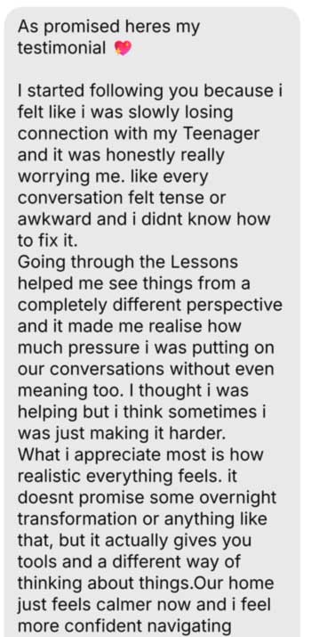 I began teaching parents the same practical approaches we use clinically, simple ways to reduce pressure, rebuild trust, and make it easier for their child to talk. Again and again, parents told me the same thing: conversations felt calmer, arguments eased, and their child started coming to them voluntarily, including about the hard things.